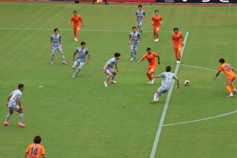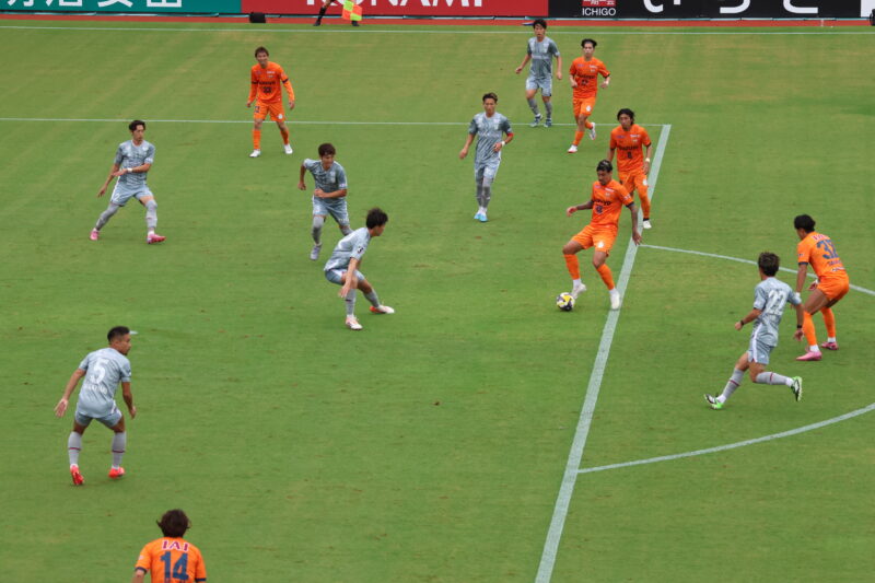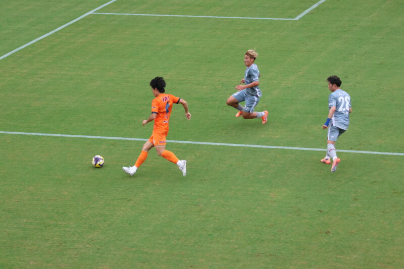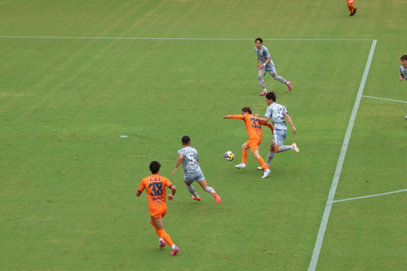 後半は早々に、乾・山原の展開からクロスで早々に吉田がシュートを放つなど積極的な姿勢が見られた。