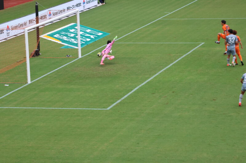 守りは62分のFC東京の波状攻撃を梅田がしっかりと防ぐ。