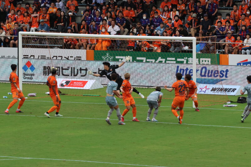 清水もやられてるばかりでなく、剥がして左サイドからクロスで応酬。