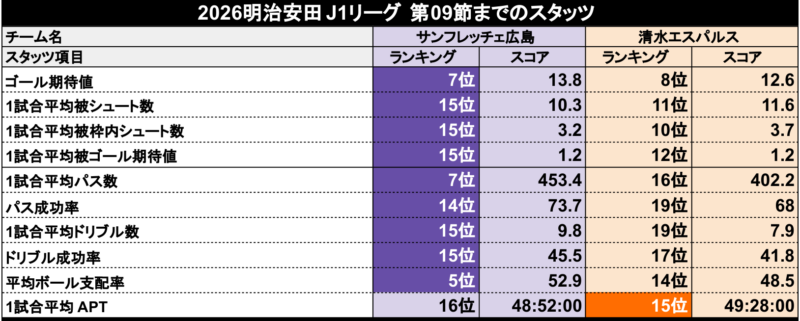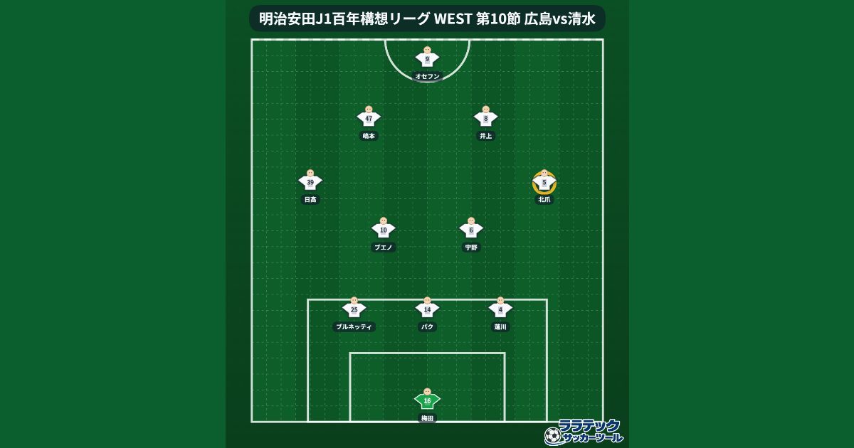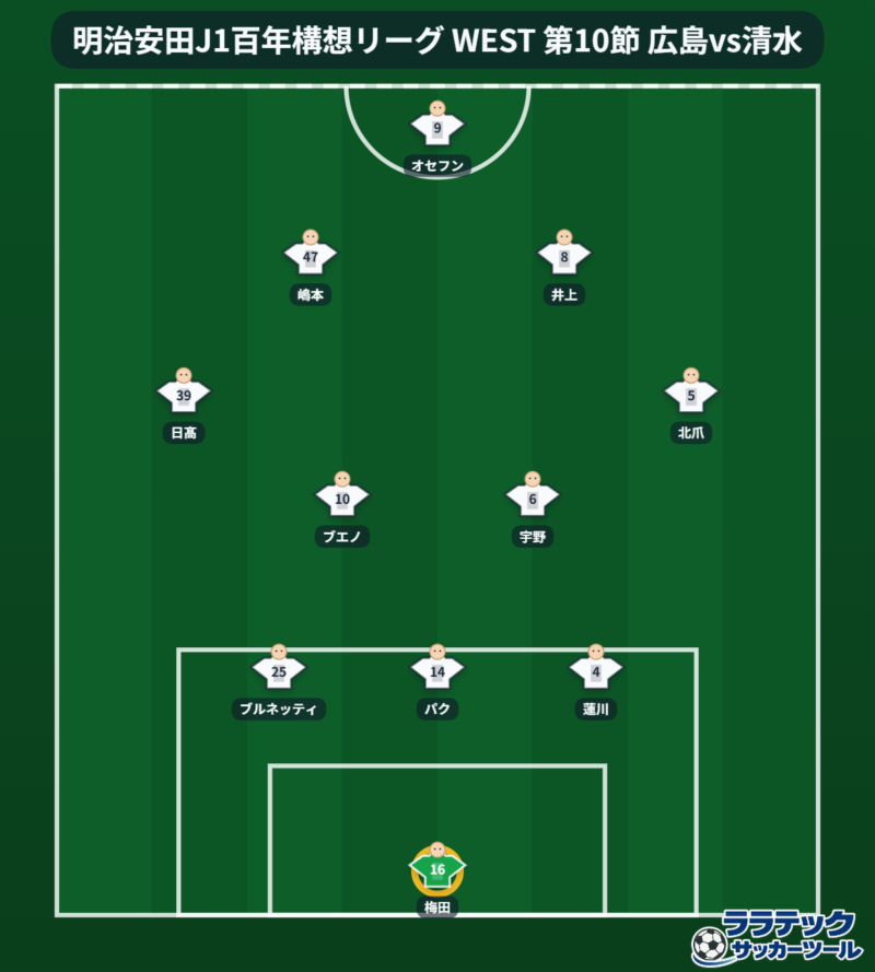 清水は前節の長崎戦のようなプレスが中々前線からかけられない、というよりかは広島がしっかり外してくる。