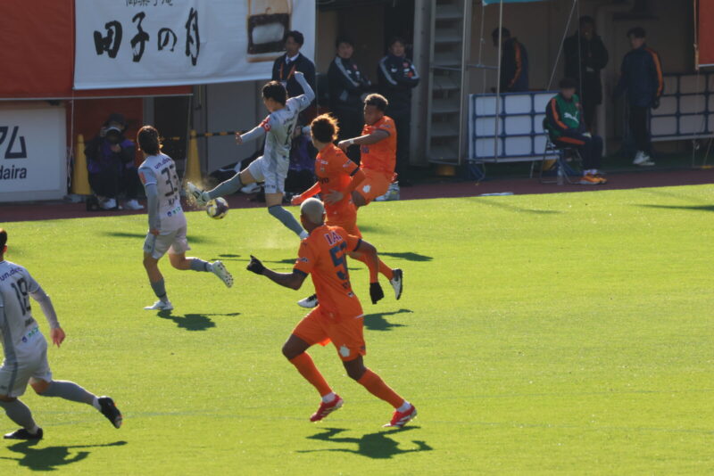 それでも12分、アチェがクロスに合わせにいってCK獲得、松崎のターンからドリブル、シュートでリズムが少し出た!