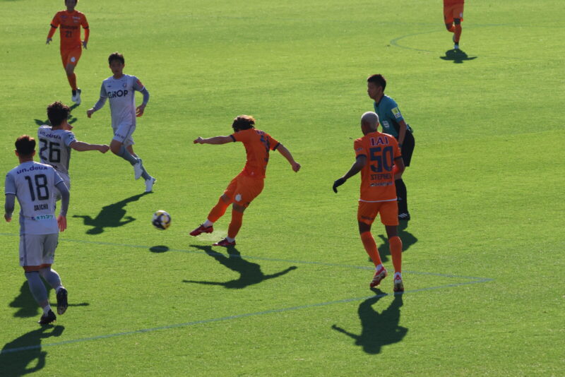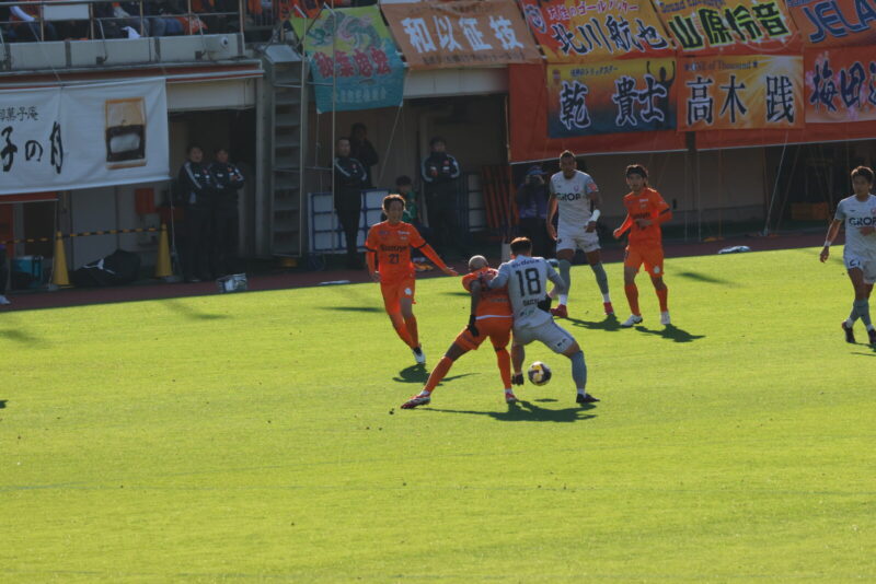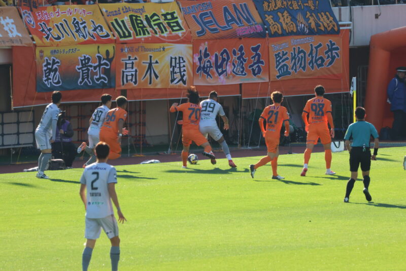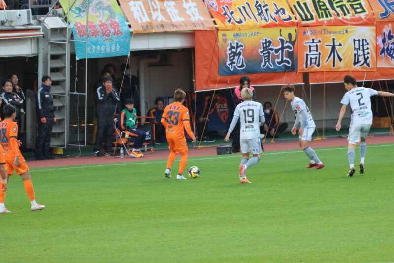 サイドから突破して山原がシュートまで行った場面もあったけど、ゴールは生まれず。