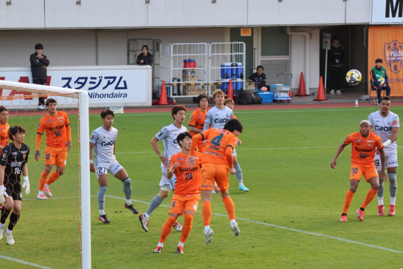 いきなりCKを与えるスタートで、そこから話題の若き日本代表・佐藤龍之介がミドルを狙ってまたCK、結局3連続で与える形になった。