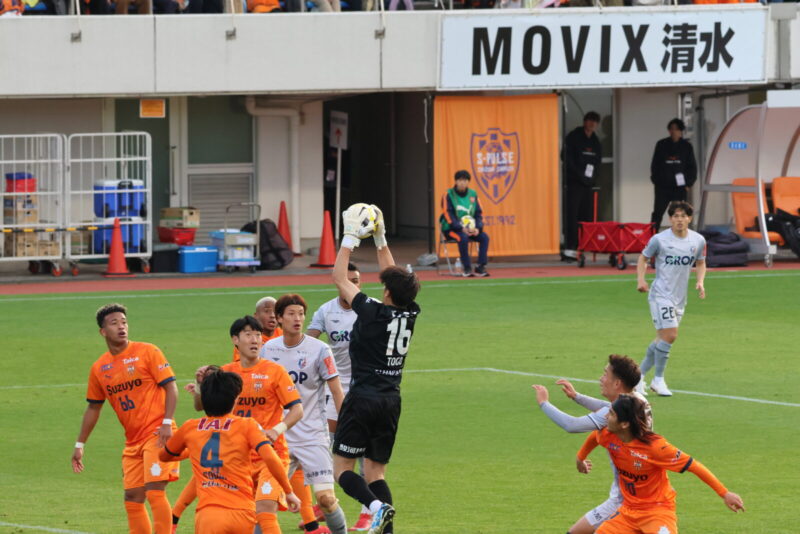 清水もボールを奪って乾の2連続シュートや、今日は途中出場だった髙橋利樹のシュートで攻め込んだが押しきれず。