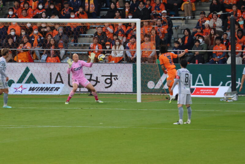 52分、FKから神谷や江坂に狙われたところは梅田がキャッチ。