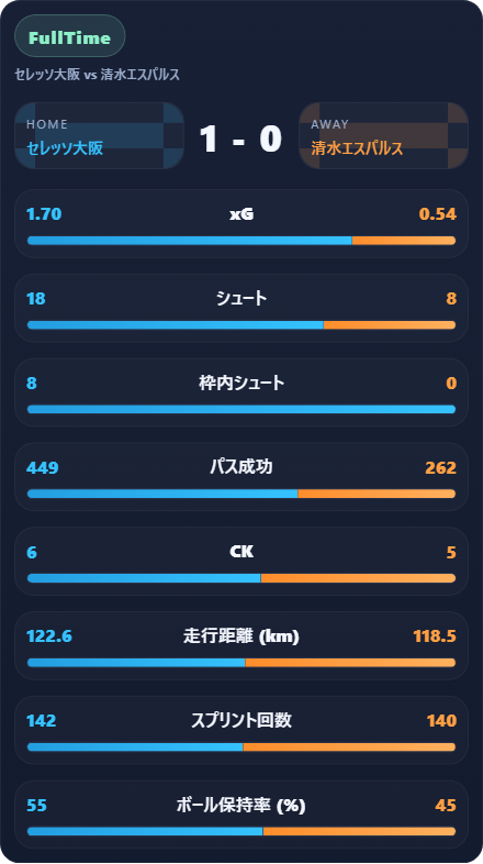 4バックだって守り抜いた![2026明治安田J1 第5節 セレッソ大阪 vs 清水エスパルス]