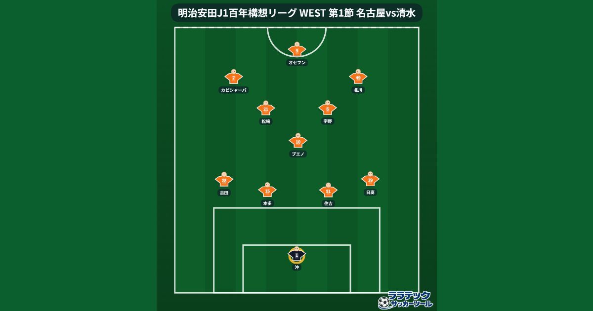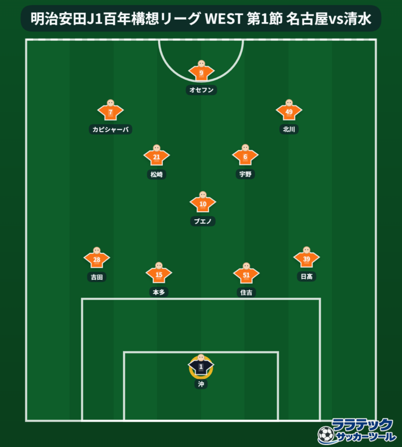 ファーストシュートは名古屋だったが、展開としてロングを狙ってくる名古屋に対し、清水は中盤でボールを奪い速く縦に攻める。